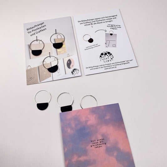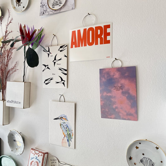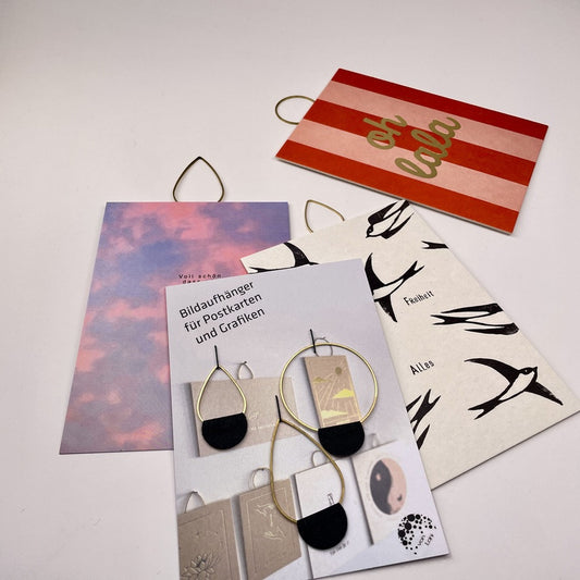 Unsere handgefertigten Bildaufhänger sind die perfekte Lösung, um Postkarten, Fotos und kleine Kunstwerke schnell und stilvoll an der Wand zu präsentieren. Sie vereinen Funktionalität mit ästhetischem Design und fügen sich harmonisch in jedes Interieur ein.