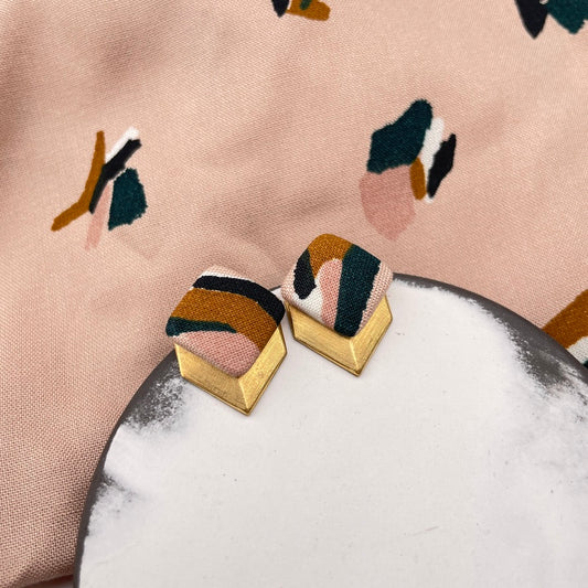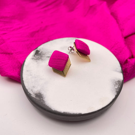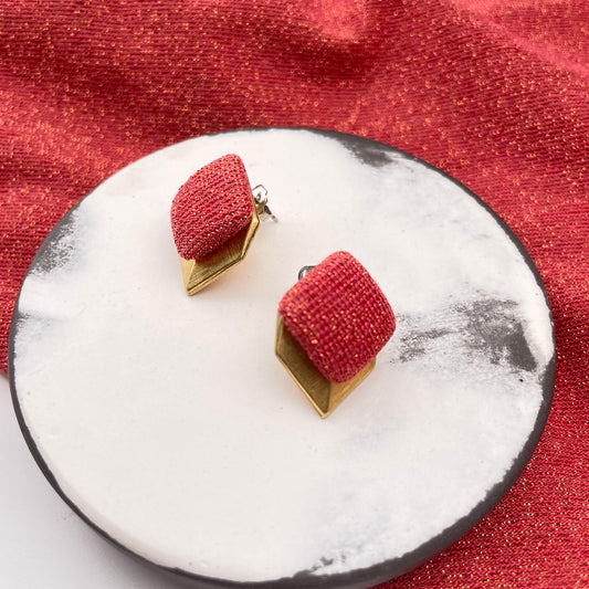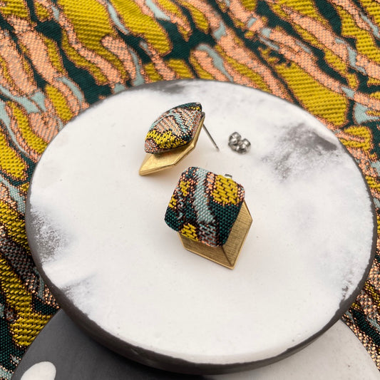 Ohrstecker aus sanften Geschmeiden. Die Ohrstecker verbinden die Schönheit von feinen Textilien mit purem Messing zu ganz besondern Schmuckstücken.