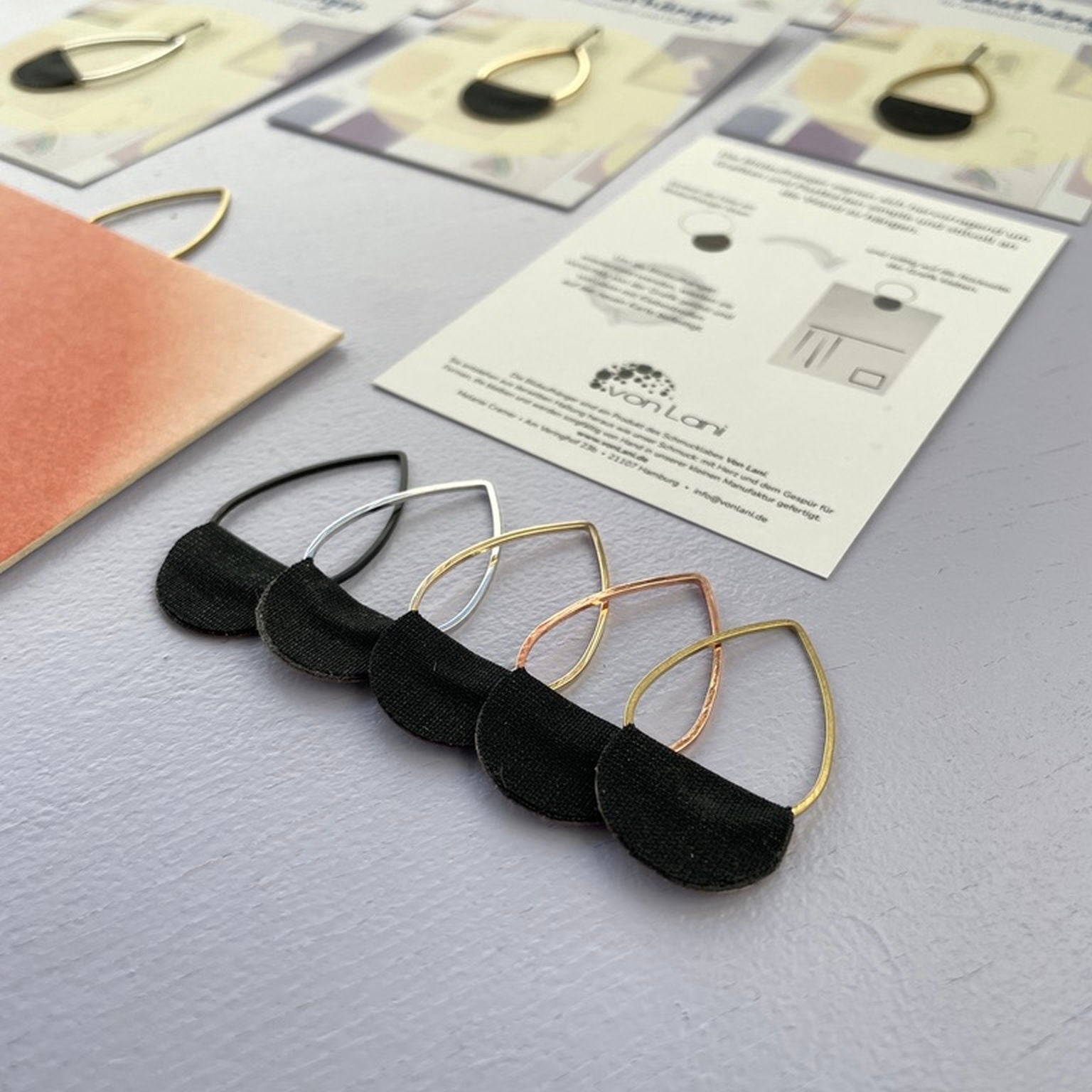 Die Schmuckelemente bestehen aus reinem Messing und sind in verschiedenen Formen erhältlich – zum Beispiel klassisch rund oder als Tropfen. Alle Varianten findest du auch als praktische Sets in meinem Shop. Farblich stehen dir vier edle Oberflächen zur Auswahl: