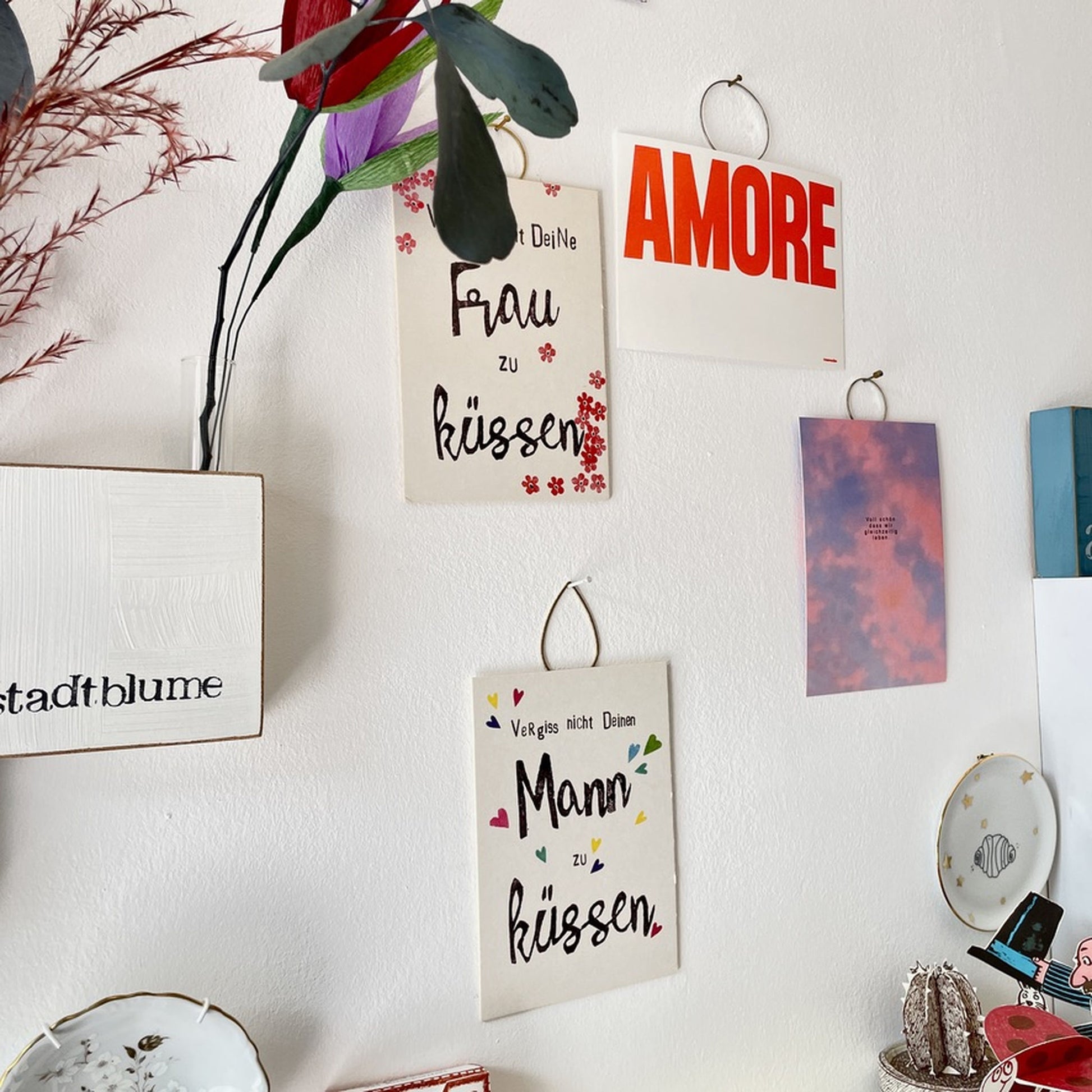 Für all die Sammler:innen unter euch, die mit Begeisterung die schönsten Postkarten finden – aus Museen, kleinen Läden, vom Flohmarkt oder als persönliche Grüße per Post. Mit diesen Aufhängern wird daraus eine individuelle Wandgalerie, die wächst, sich verändert und mit jeder Karte eine neue Geschichte erzählt.