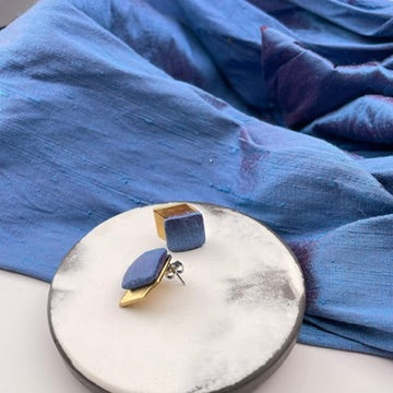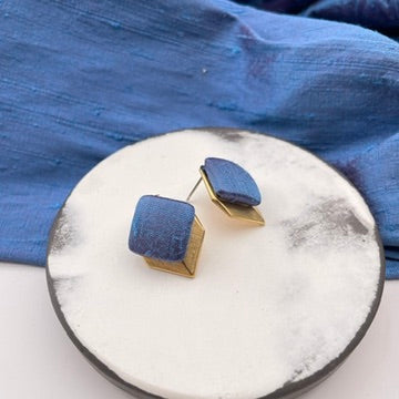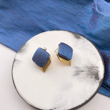 Die Ohrstecker bestehen auf einen 1,5cm kleinen quadradtischen von Hand bespannten Knopf auf einen starken Messingelement aus reinem Messing. Ganz grafisch trägt sich dieser Würfel an deinem Ohr. Das Modell wirkt klar und ausagekräftig zugleich – und ist ideal für alle, die Statementschmuck lieben, bloß nicht langweilig.